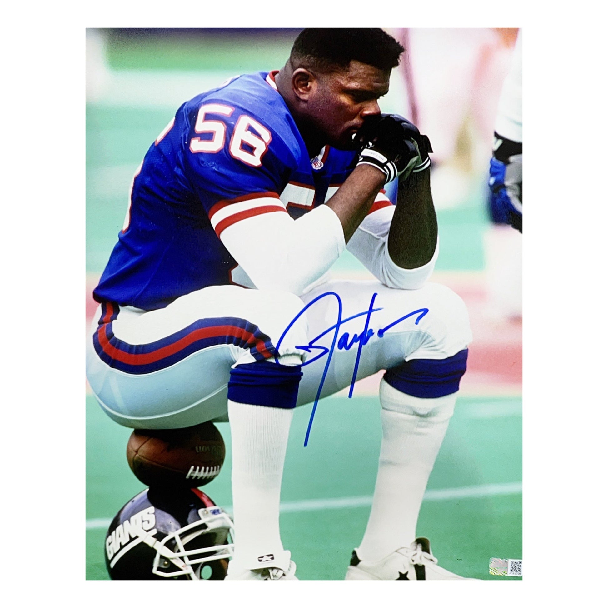 Lawrence Taylor Autographed New York Giants Sitting Blue Jersey 11x14 Steiner CX