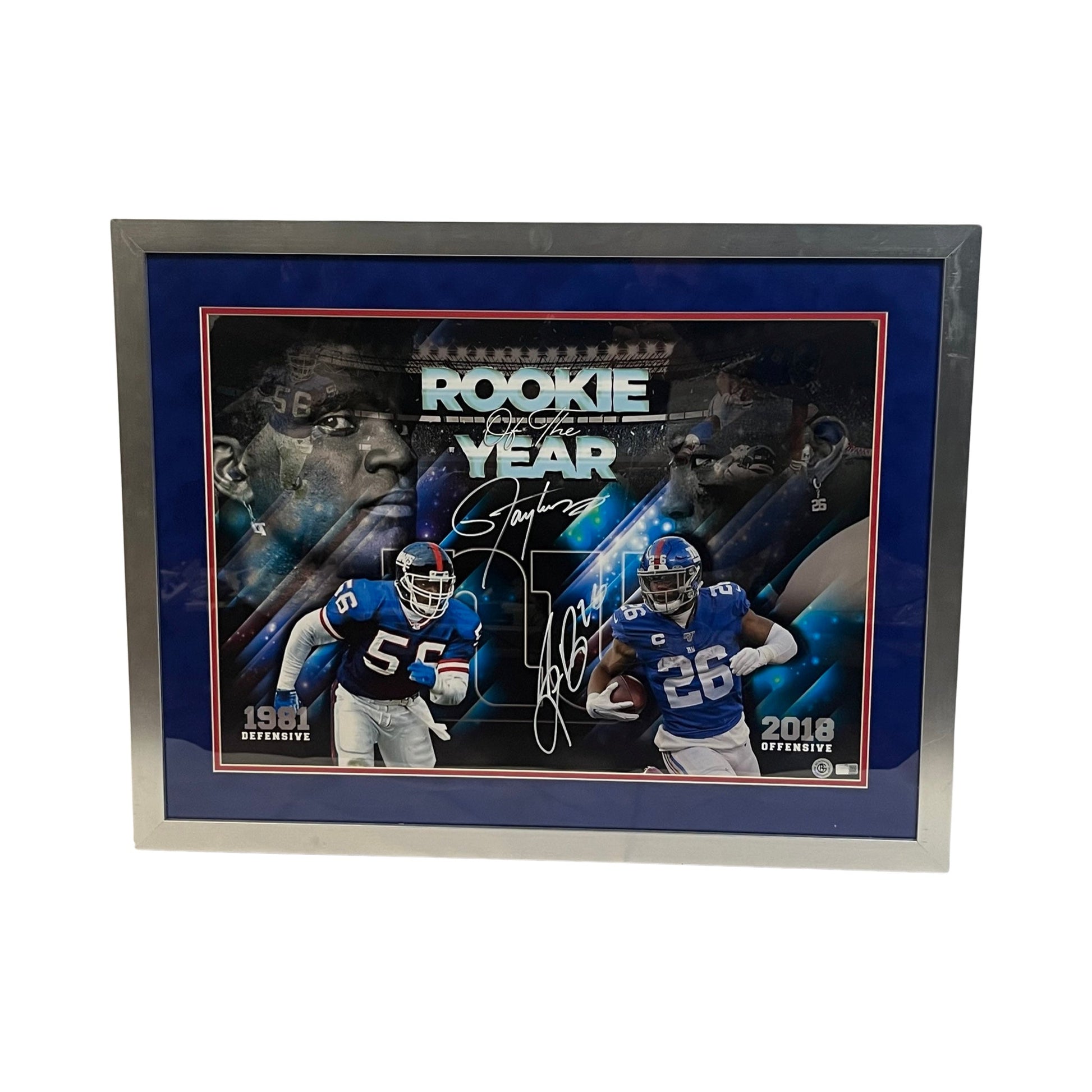 Lawrence Taylor & Saquon Barkley Autographed New York Giants Rookie of the Year Edit Framed 20x24 Steiner CX
