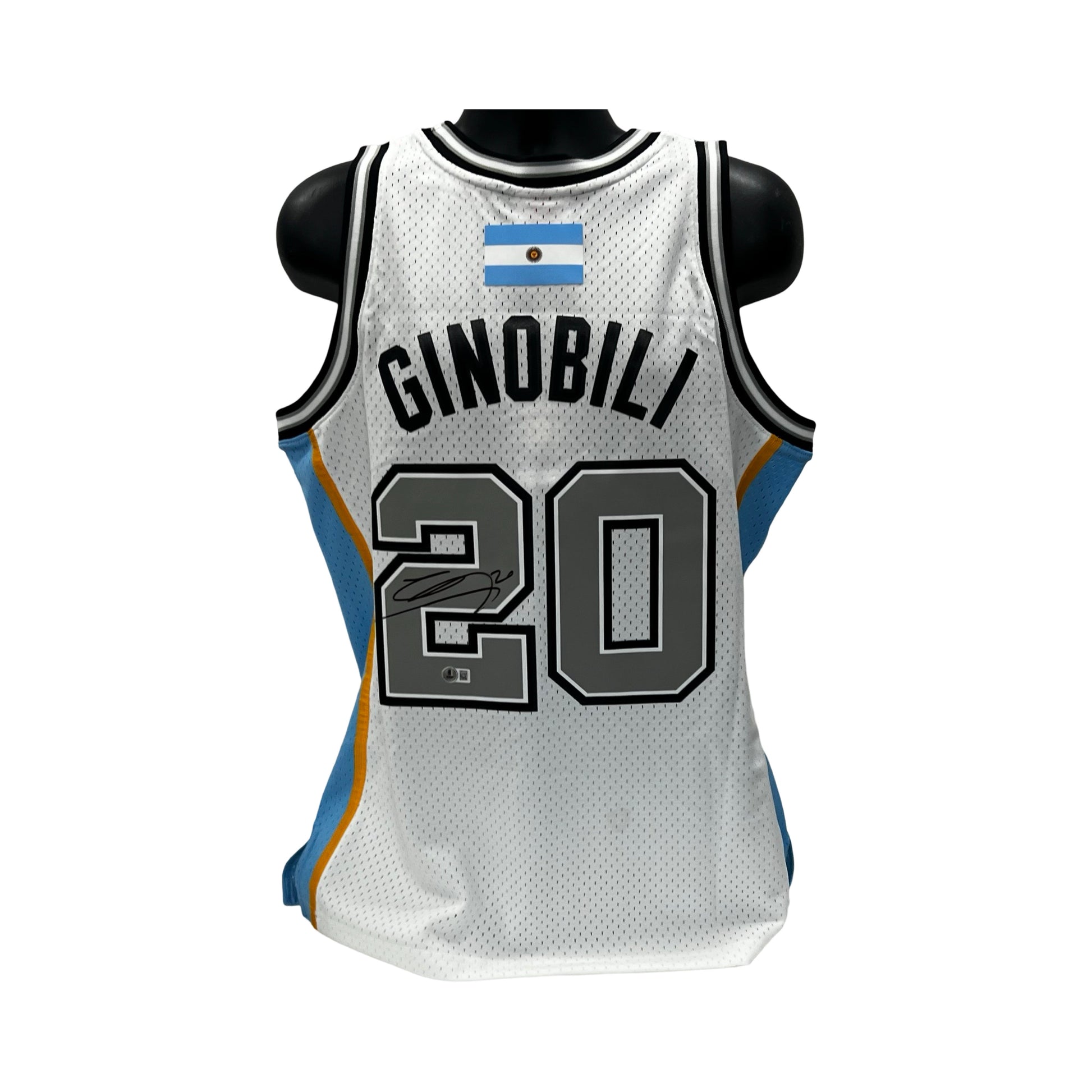 Manu Ginobili Autographed San Antonio Spurs White Mitchell & Ness Jersey Beckett