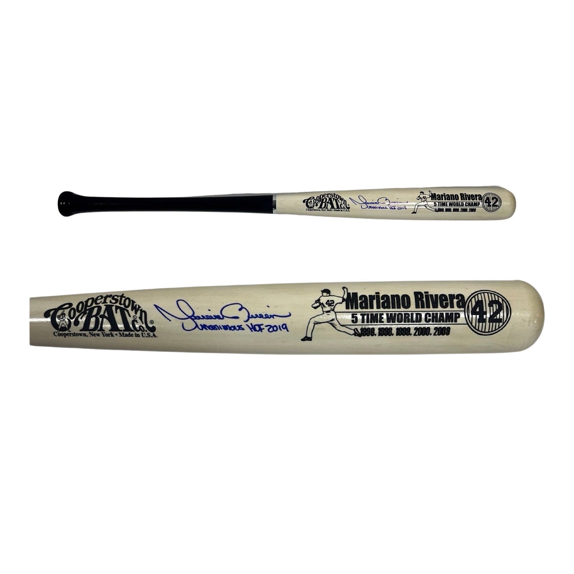 Mariano Rivera Autographed New York Yankees Cooperstown White Barrel Bat Unanimous HOF 2019 Inscription Steiner CX