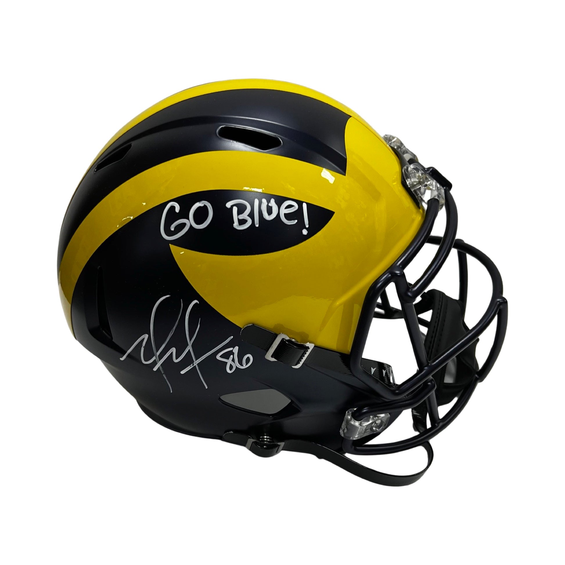 Mario Manningham Autographed Michigan Wolverines Speed Replica Helmet "Go Blue!" Inscription Steiner CX