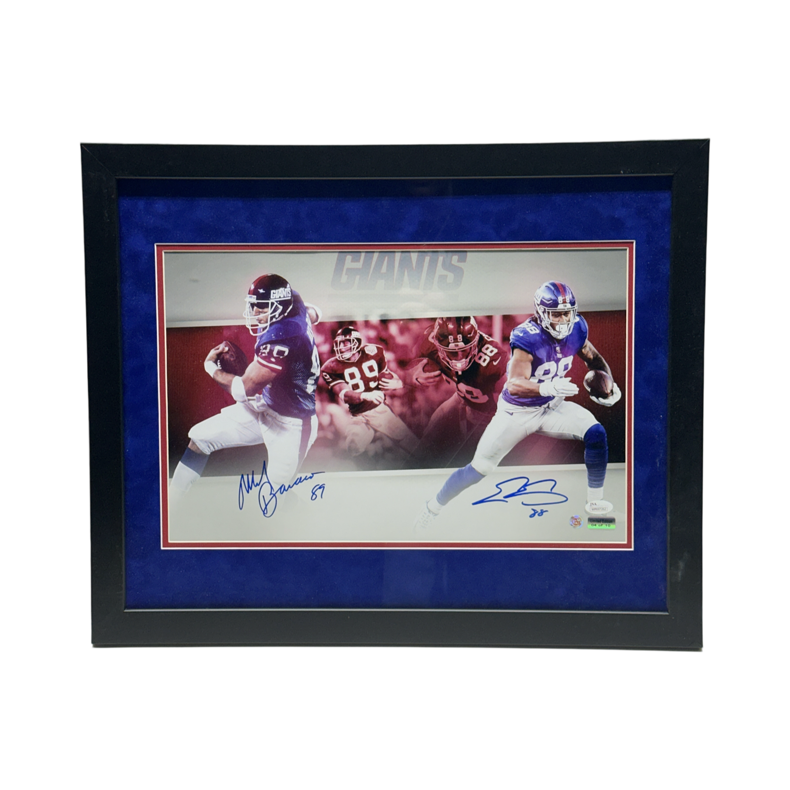 Mark Bavaro & Evan Engram Autographed New York Giants Red Edit 11x17 JSA LE - Framed