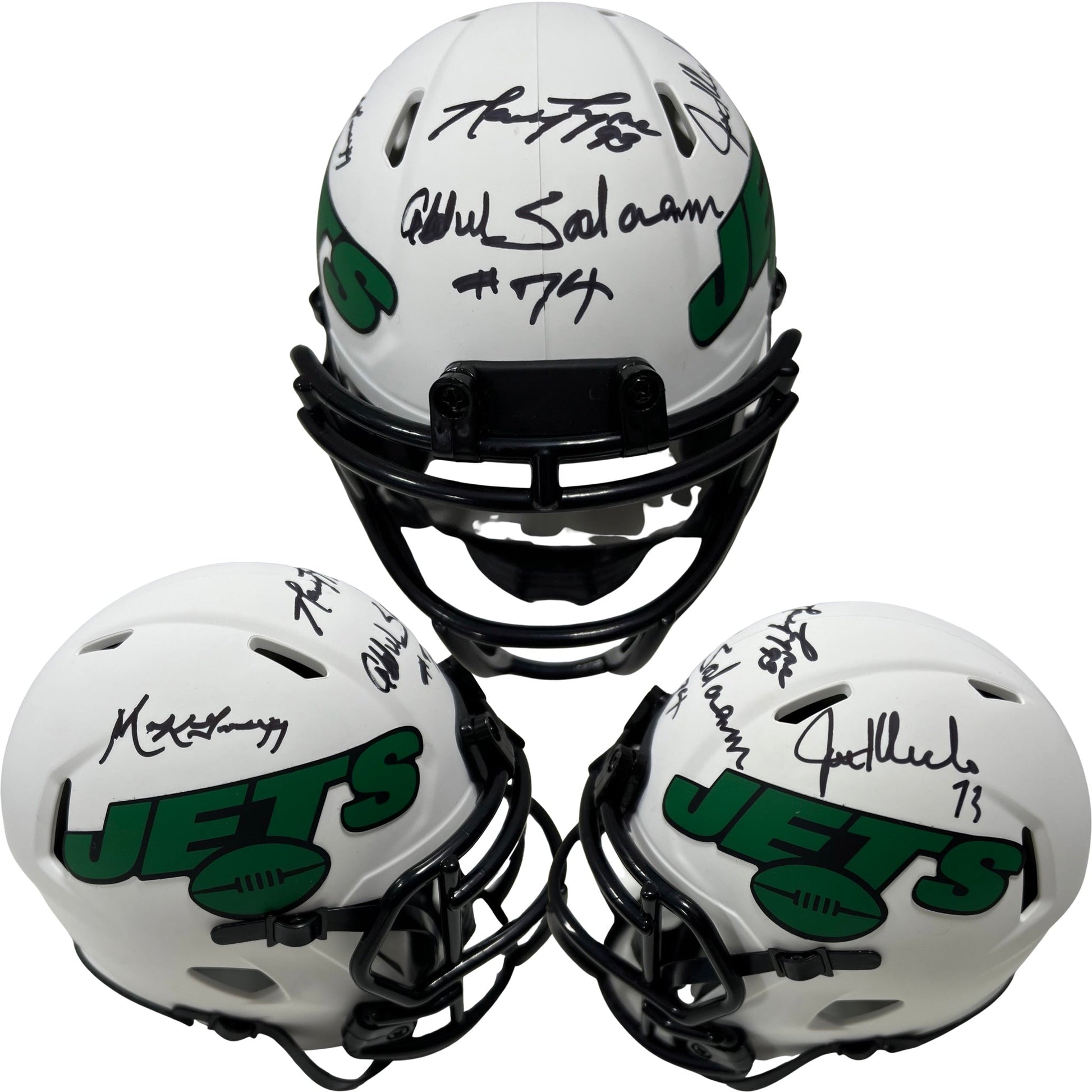 Mark Gastineau, Joe Klecko, Marty Lyons & Abdul Salaam Autographed New York Jets Sack Exchange Lunar Eclipse Mini Helmet JSA