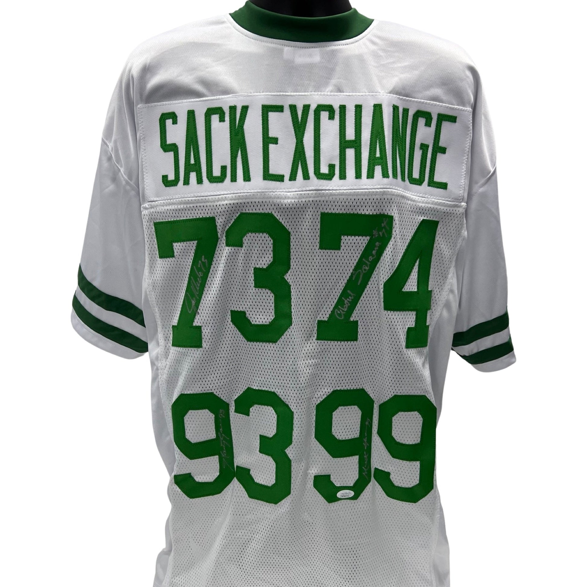 Mark Gastineau, Joe Klecko, Marty Lyons & Abdul Salaam Autographed New York Jets Sack Exchange White Jersey JSA