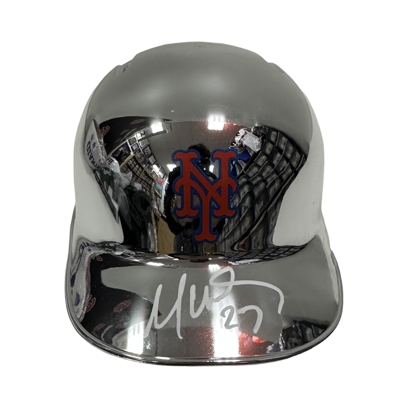 This is a mini helmet that has been hand signed by Mark Vientos. This item has been certified authentic by Beckett Authentication (BAS) and comes with their tamper-proof QR Code sticker that can be verified on https://www.beckett-authentication.com.