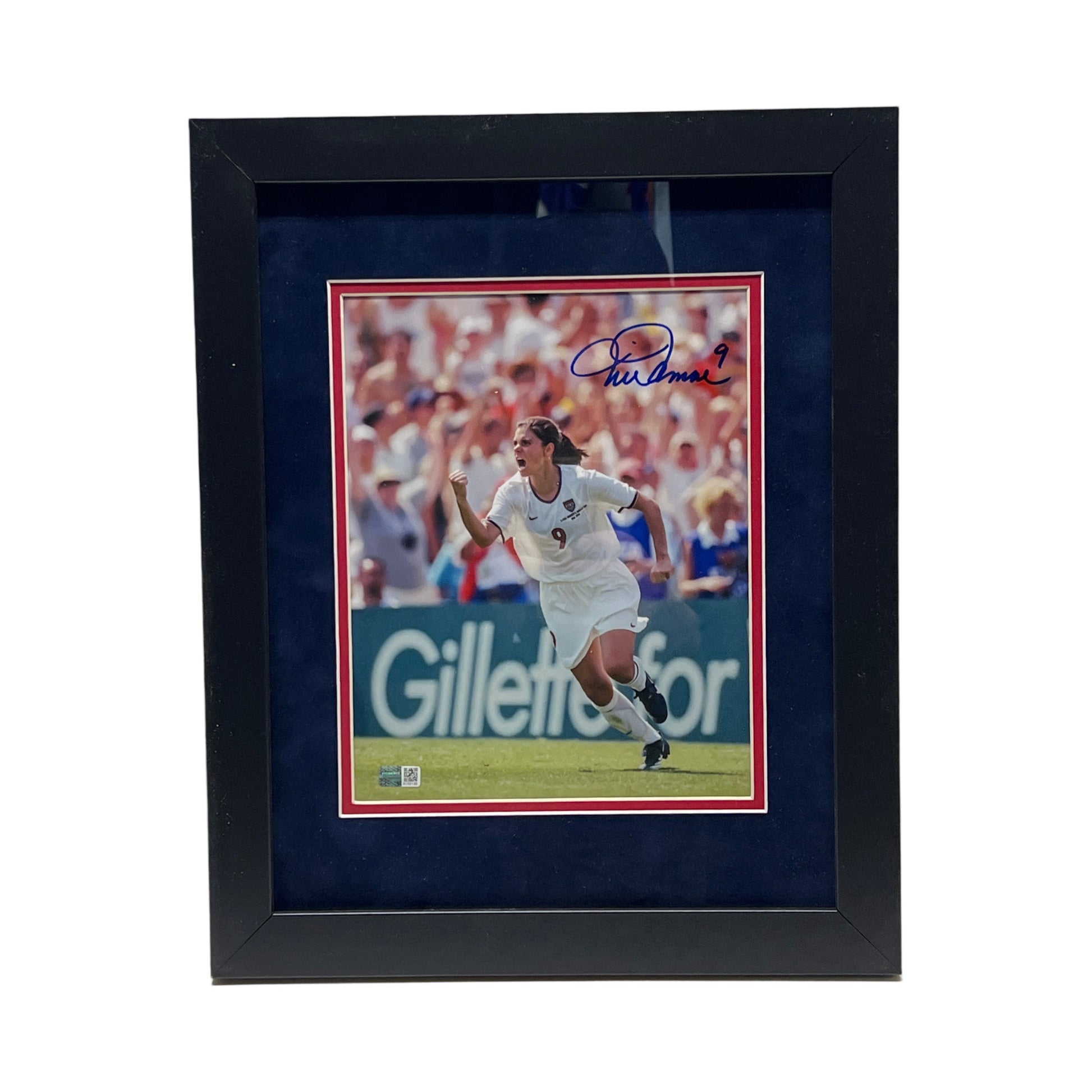 Mia Hamm Autographed Team USA Women's Soccer Pump Fist Framed 8x10 Steiner CX