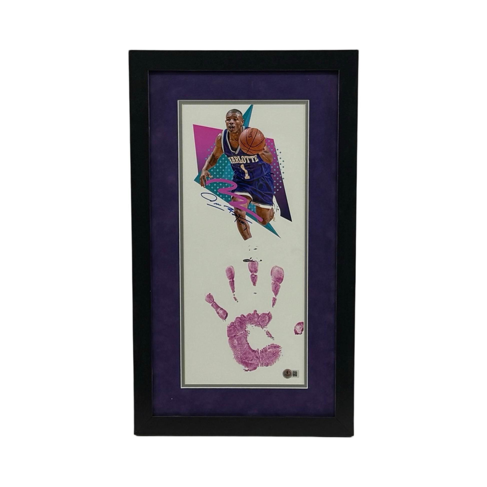 Muggsy Bogues Autographed Framed Handprint 8x18 Beckett