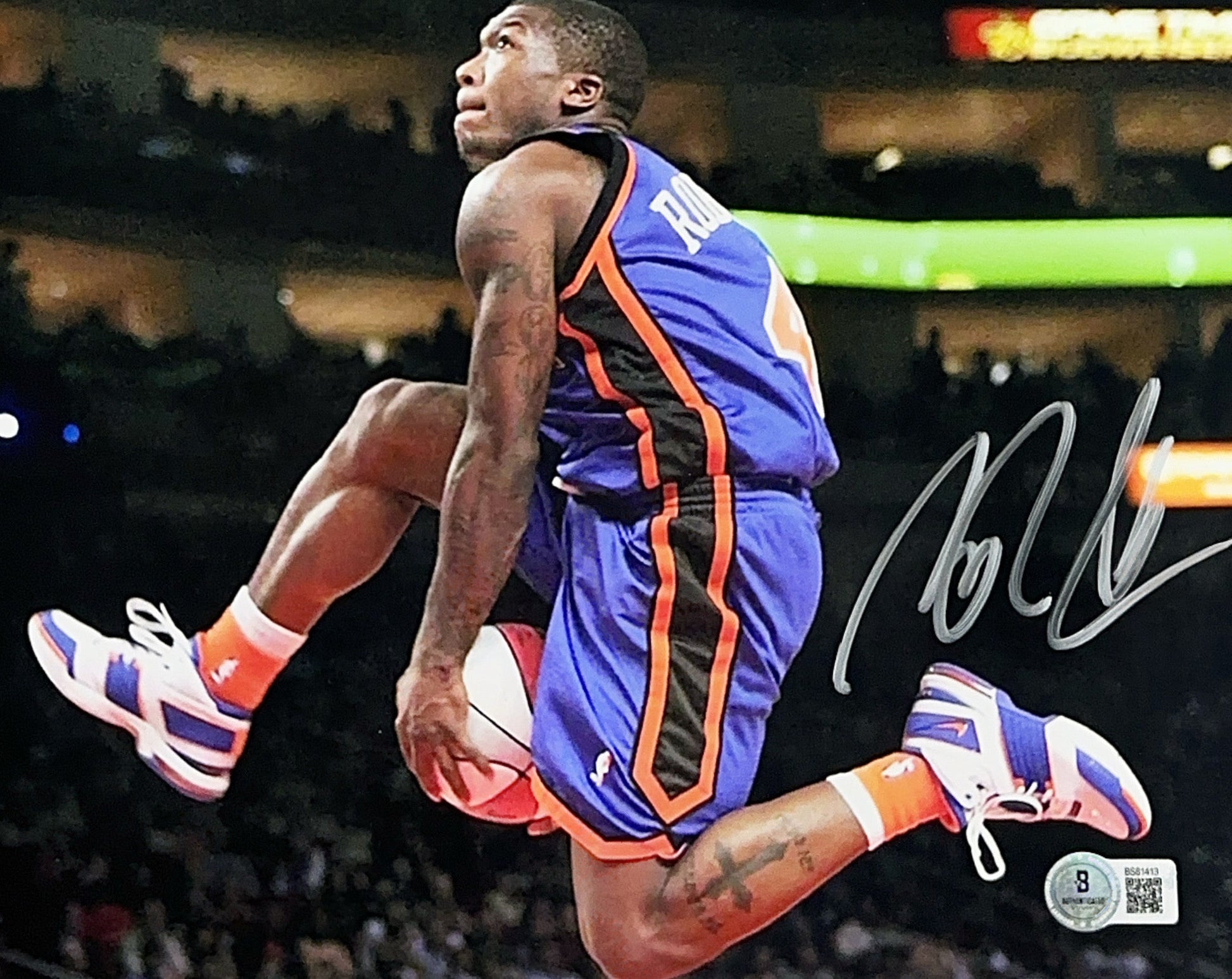 Nate Robinson Autographed New York Knicks Horizontal Between The Legs Dunk Silver Ink 8x10 Beckett