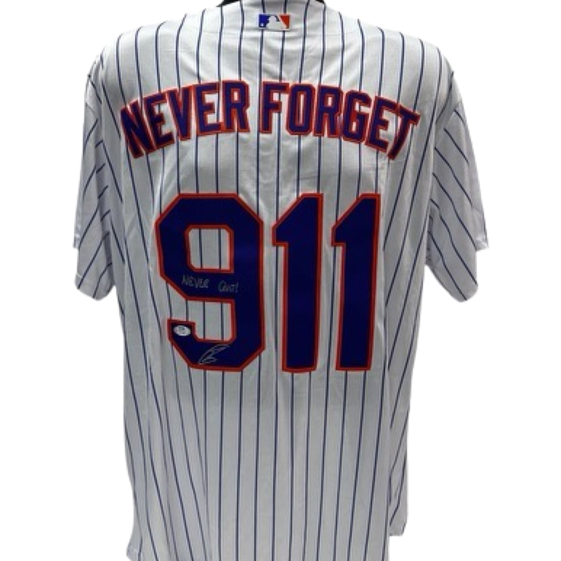 Robert O’Neill Autographed New York Mets Never Forget 9/11 Pinstripe Jersey NEVER Quit Inscription PSA