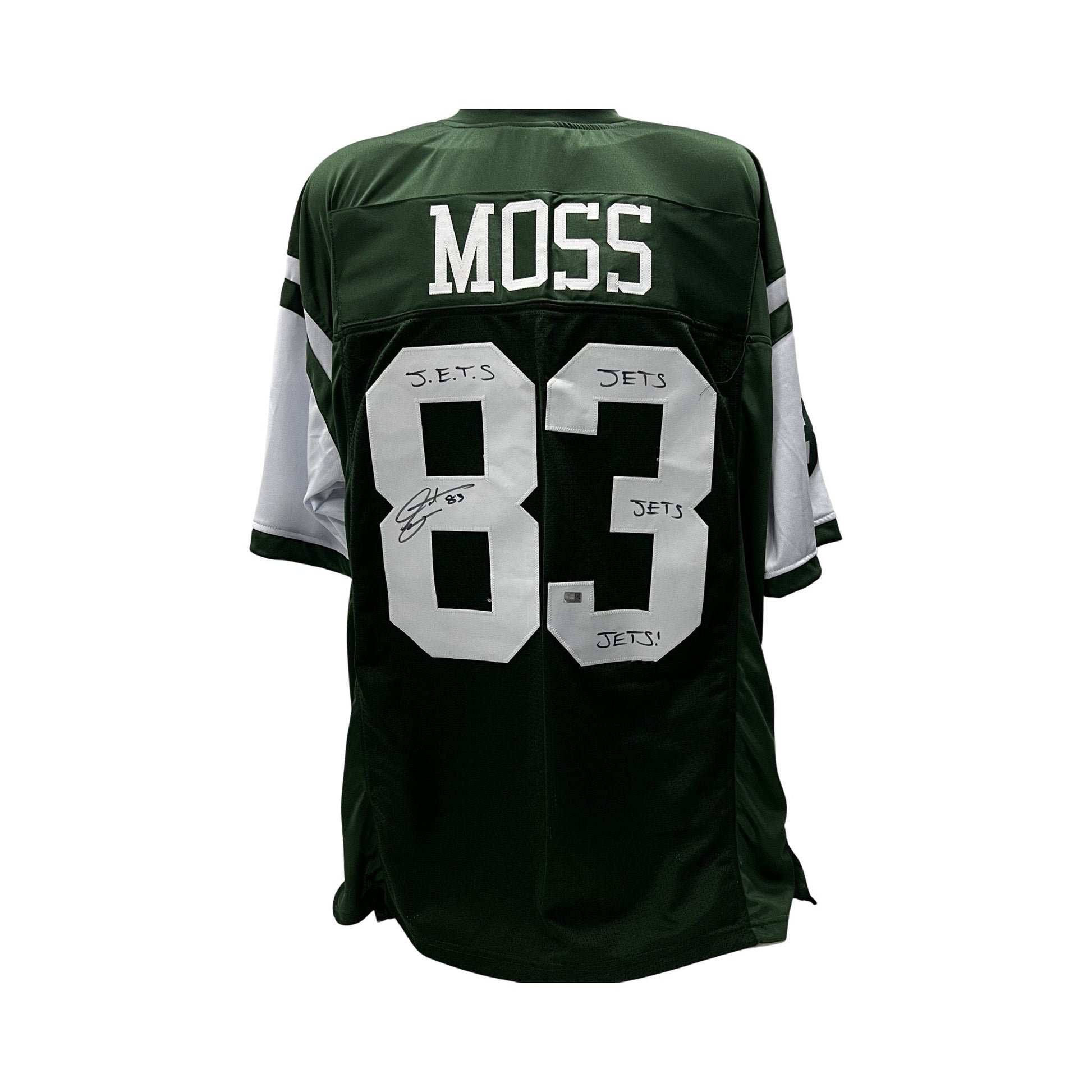 Santana Moss Autographed New York Jets Green Jersey "Jets Jets Jets!" Inscripton Steiner CX