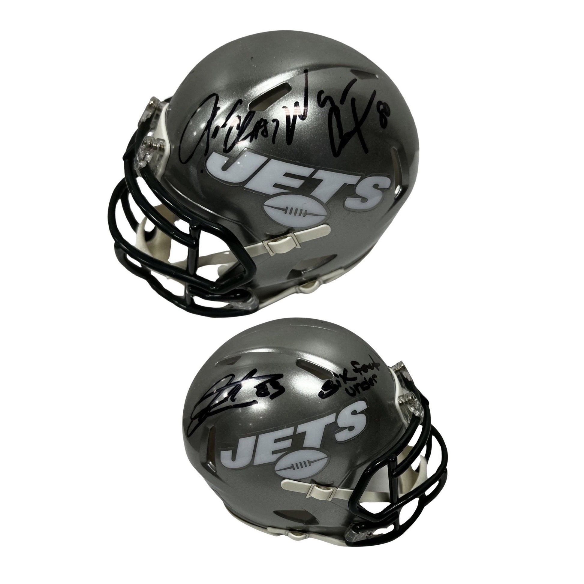 Santana Moss, Wayne Chrebet & Laveranues Coles Autographed New York Jets Flash Mini Helmet "Six Feet Under" Inscription Steiner CX