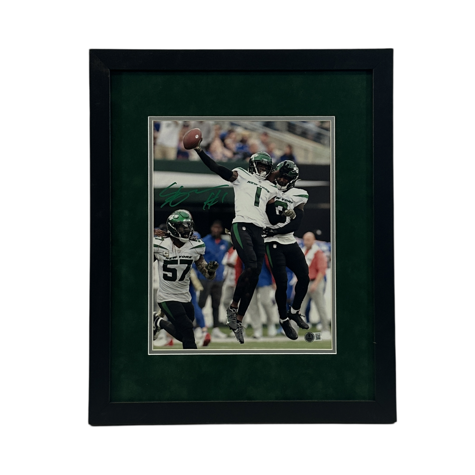 Sauce Gardner Autographed New York Jets Air Jump 11x14 Beckett - Framed