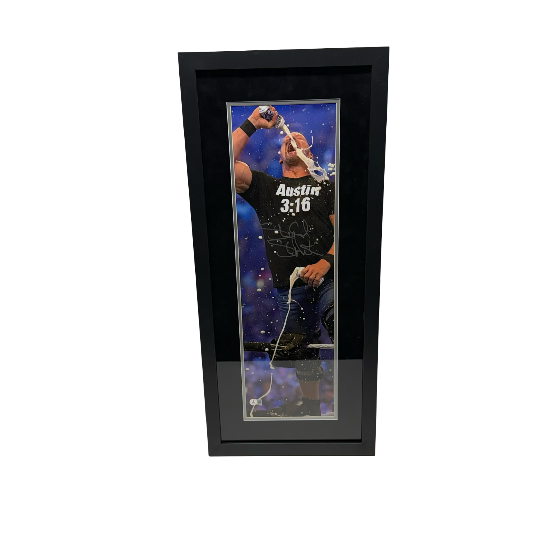 Stone Cold Steve Austin Autographed WWE Chugging Beer Framed 8x26 Beckett