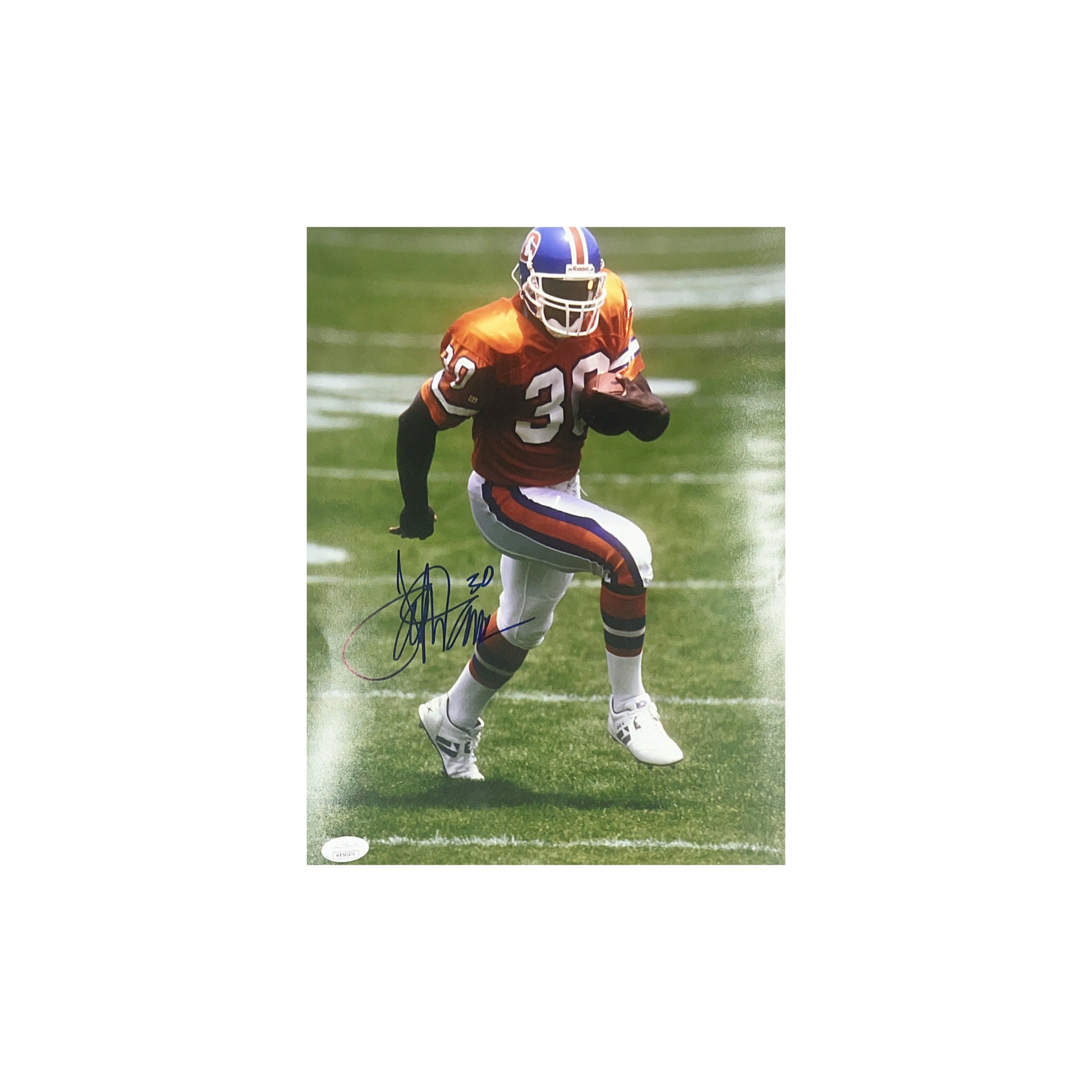 Terrell Davis Autographed Denver Broncos Orange Jersey Rush 11x14 JSA