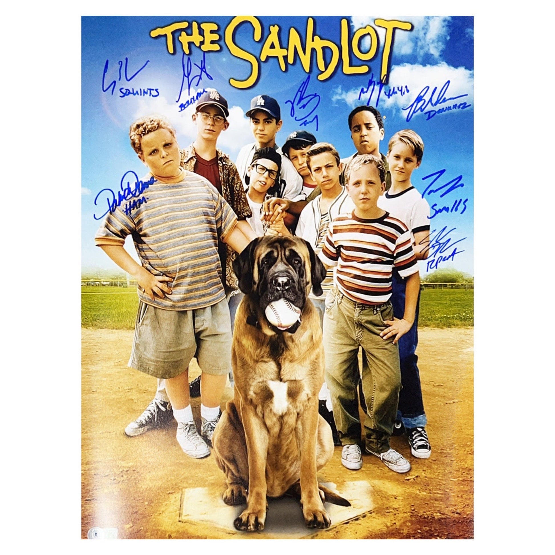 The Sandlot Cast Autographed Movie Poster Full Dog 8 Cast Members 16x20 w/ Character Name Inscriptions Beckett - Unframed