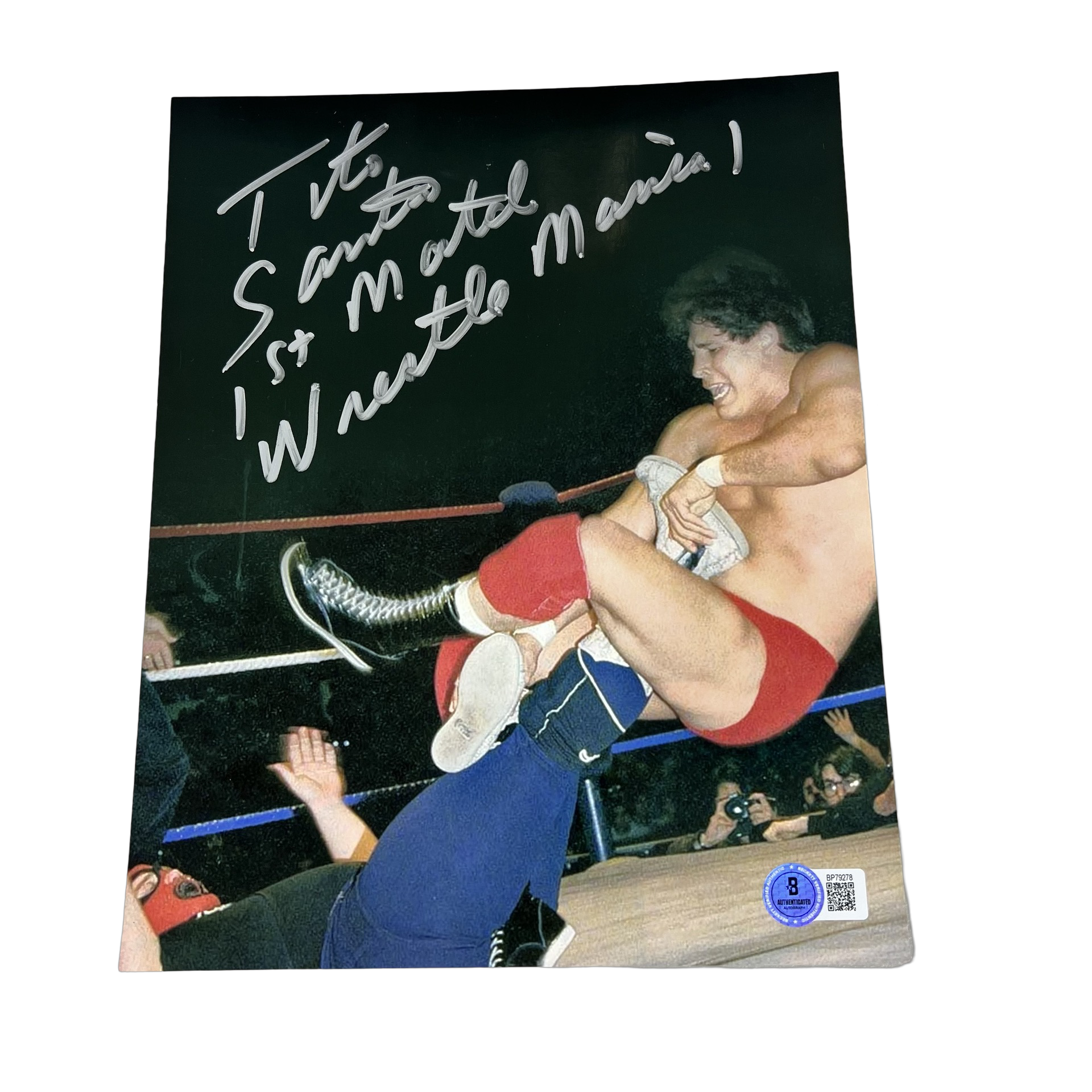 Tito Santana Autographed Leglock 11x14 "1st WrestleMania Match" Beckett
