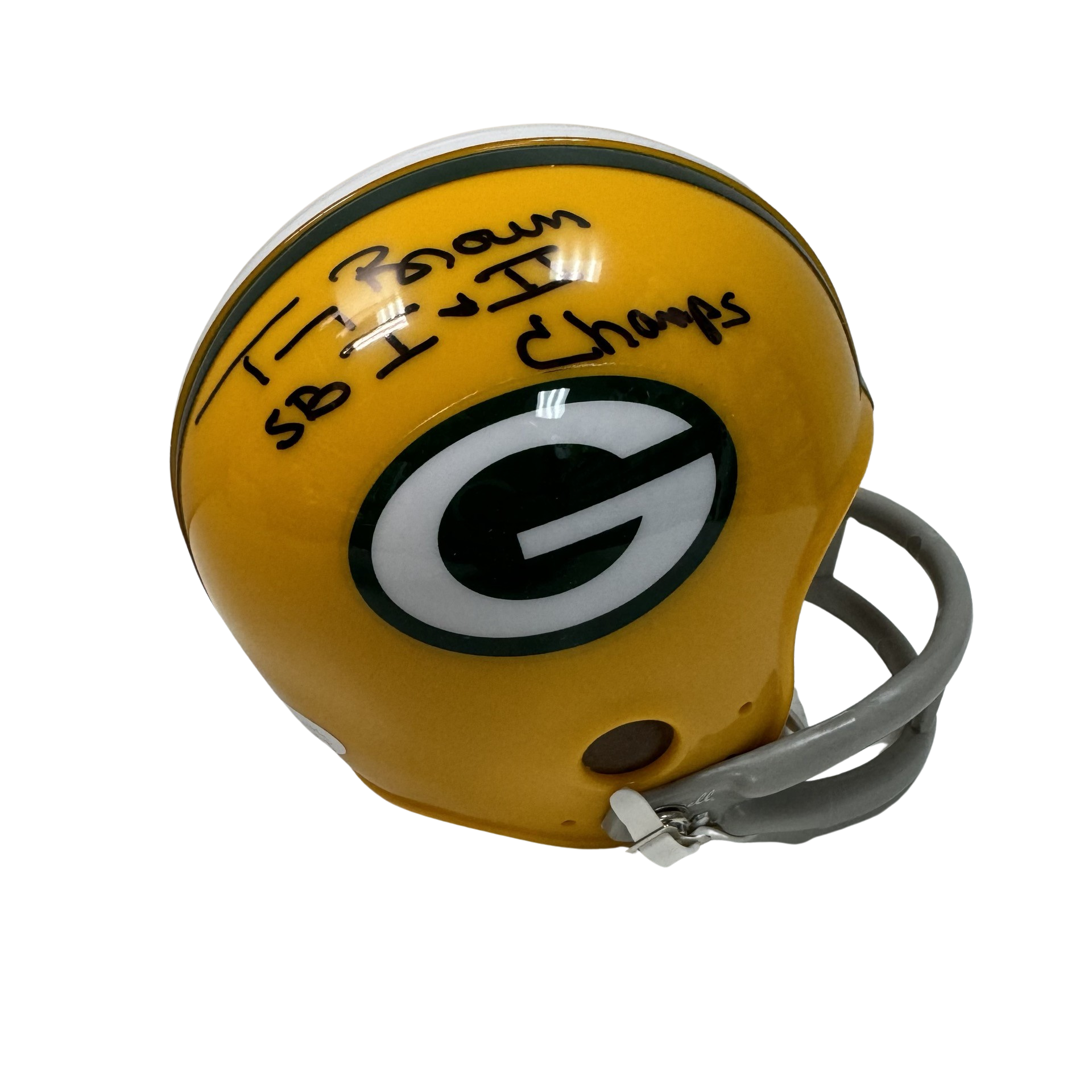Tom Brown Autographed Green Bay Packers Mini Helmet SB 1+2 Champs Inscription JSA