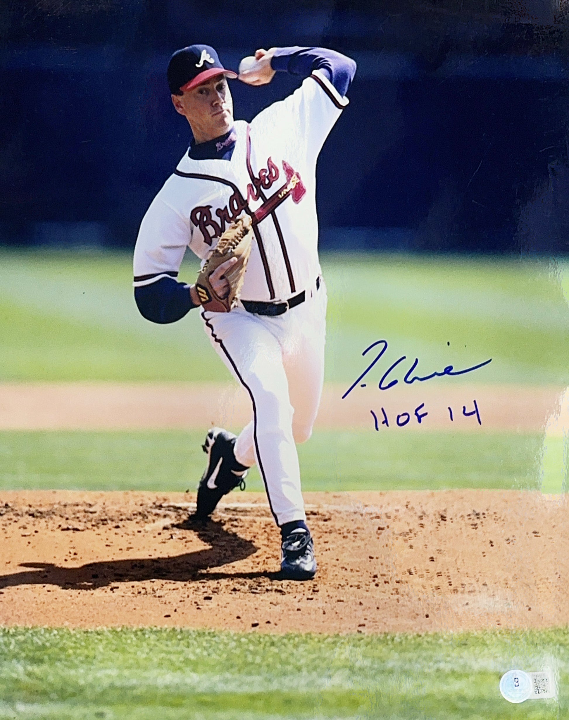 Tom Glavine Autographed Atlanta Braves Mid Pitch "HOF 14" Inscribed 11x14 Beckett