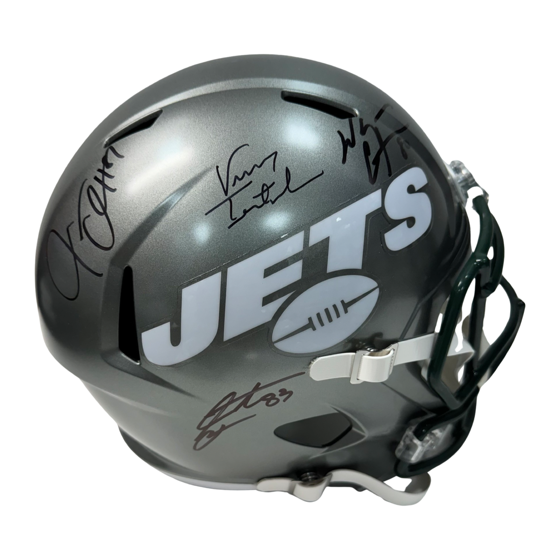 Vinny Testaverde, Wayne Chrebet, Santana Moss & Laveranues Coles Autographed New York Jets Flash Replica Helmet PSA