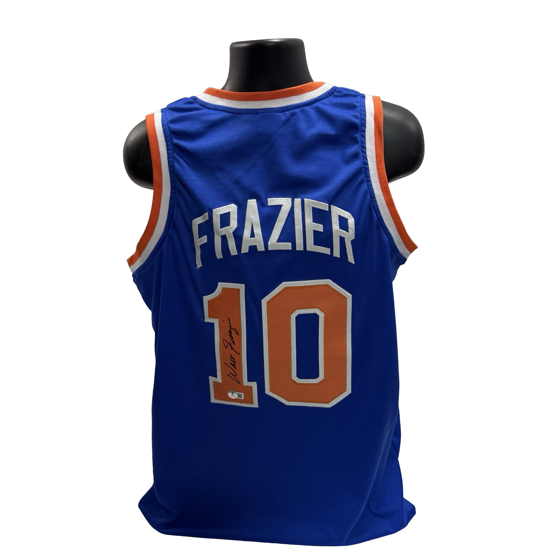 Walt Clyde Frazier Autographed New York Knicks Blue Jersey Beckett
