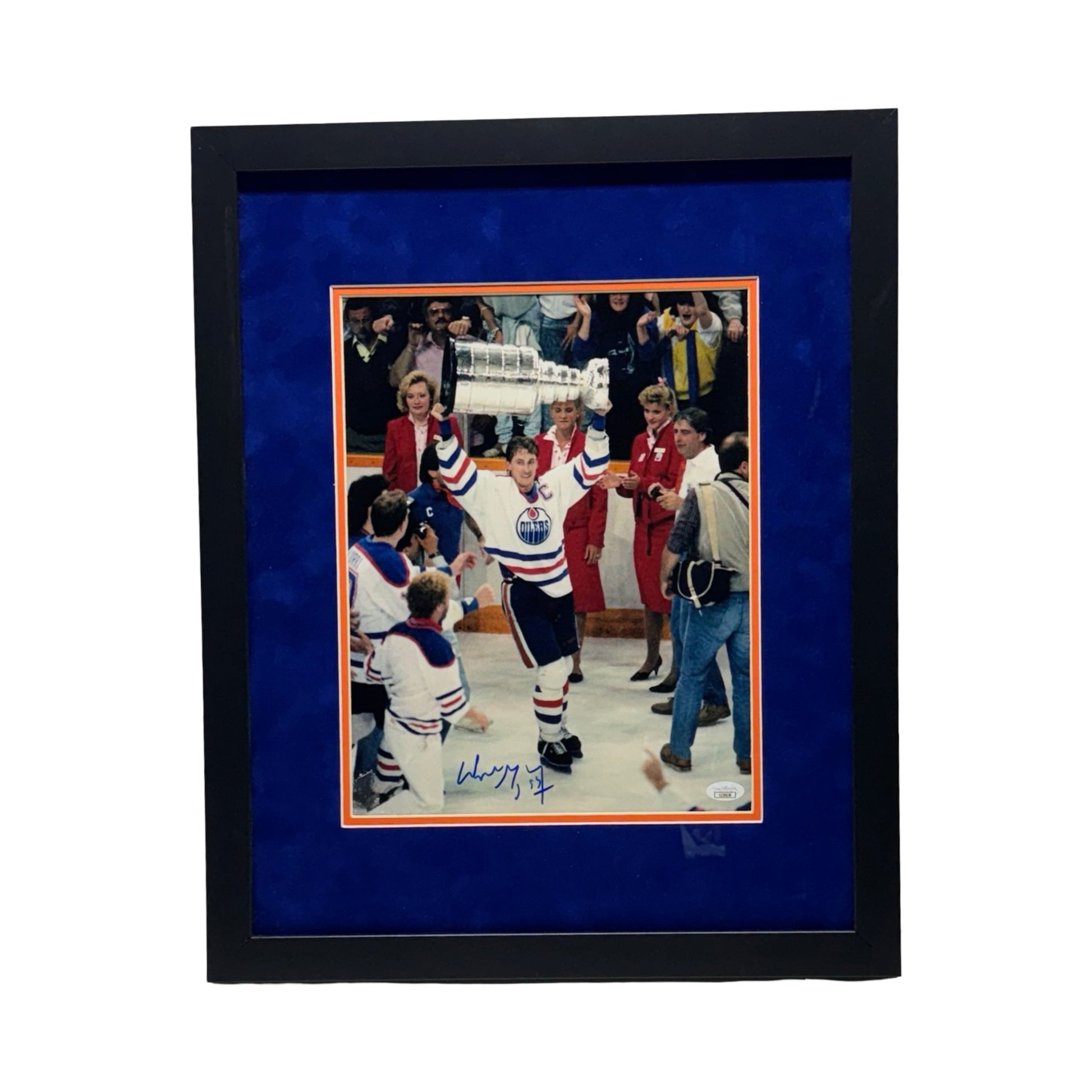 Wayne Gretzky Autographed Edmonton Oilers Holding Cup 11x14 JSA - Framed